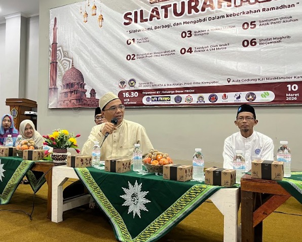 Fakultas Ilmu Komputer (FIKOM) Universitas Muhammadiyah Metro menggelar kegiatan akbar Silaturahmeet Ramadhan 2026 pada Selasa, 10 Maret 2026, bertempat di Aula FIKOM. Acara ini mengusung kegiatan Buka Bersama dan Tausiyah Ramadhan, yang dihadiri oleh berbagai unsur civitas akademika serta mitra eksternal.